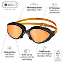 Der 100% Ultra Soft TPR Monobloc-Rahmen sorgt für maximalen Komfort und Leichtigkeit mit einer präzisen Dichtung, die das Eindringen von Wasser verhindert, ohne die Brille zu sehr zu verengen. Das niedrige Profil des Rahmens begünstigt die Hydrodynamik der Brille, so dass sie sich eng an das Gesicht anschmiegt und die Stabilität unter allen Bedingungen verbessert.